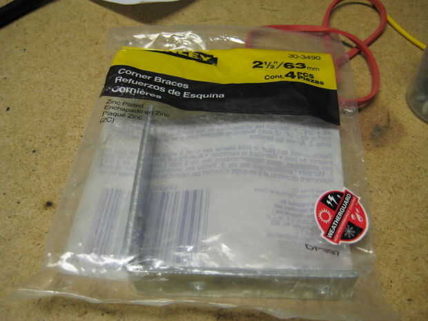 Estas se utilizarán para montar la placa al grifo. El conjunto nos agarró en un paquete de cuatro de Home Depot, pero cualquier ferretería debe llevar algo similar. Si usted está buscando un número de pieza utilizamos el Stanley 30-3490 Zinc plateado abrazaderas para esquina.