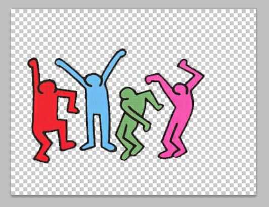 Utilizar la herramienta varita mágica para seleccionar el fondo de cada imagen y eliminarlo.  Utilice la herramienta Borrador para eliminar las restantes líneas no deseadas.