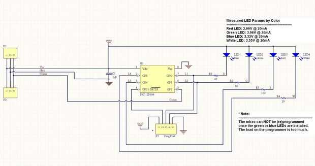Cada lámpara está procesando 2 millones de instrucciones por segundo (MIPS 2). Así que la cadena de 64 lámparas están empujando los 256 LEDs utilizando 128 MIPS de potencia! Hace para un diseño escalable, al agregan más LEDs, más MIPS es también automáticamente añadido. Sé que tu forma de pensar - no te preocupes, el micro es sólo 70 centavos de dólar - de hecho, los cuatro LEDs juntos cuestan más que el micro.