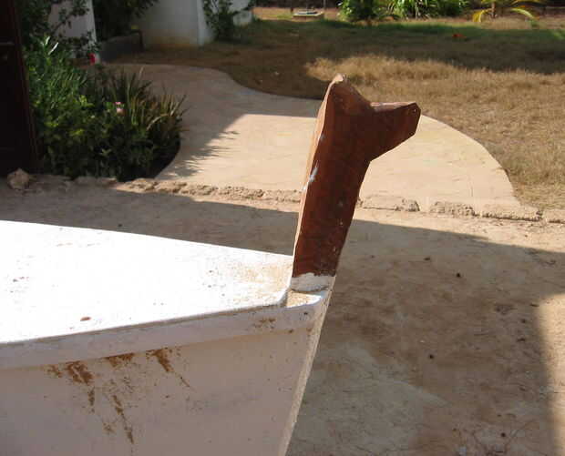 Afortunadamente el final de la stempiece tenía un montón de madera a la izquierda, por lo que había tallado un cachorro cabeza mascarón de proa se.