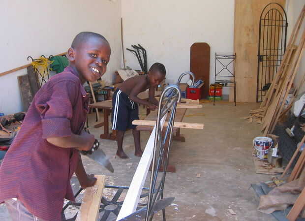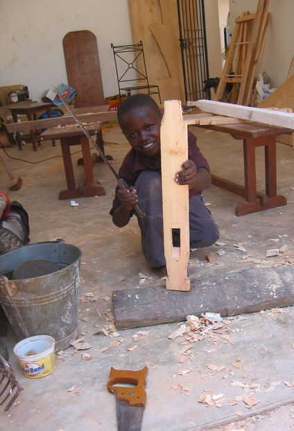 Son artesanos sorprendentemente buenos para su edad. La primera vez con que me dieron un machete para jugar me astilló mi diente con él. Ese diente todavía esté desbastada. Estos niños al parecer habían visto suficiente sangre de machete ya y picados con cuidado.