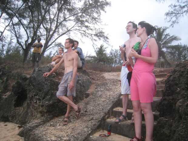 Familia y amigos ver ansiosamente como desaparecer detrás de las olas.