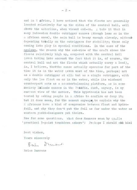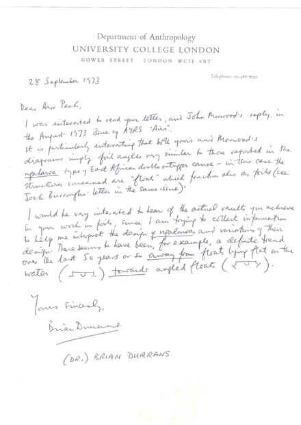 En 1973 tenía una correspondencia con (Dr.) Brian Durrans del Departamento de Antropología de