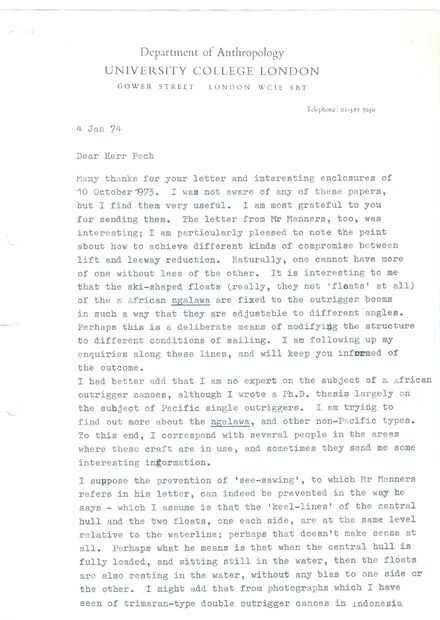 University College London. Él había invertido mucho tiempo en el tipo de ngalawa del este