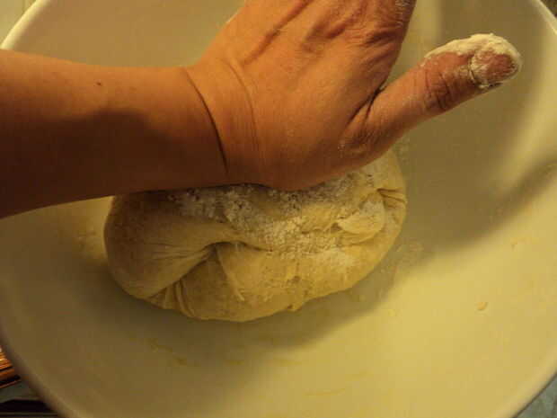 Presione hacia abajo con su palma, doblar la masa, pulse y repetir durante unos 10 minutos.