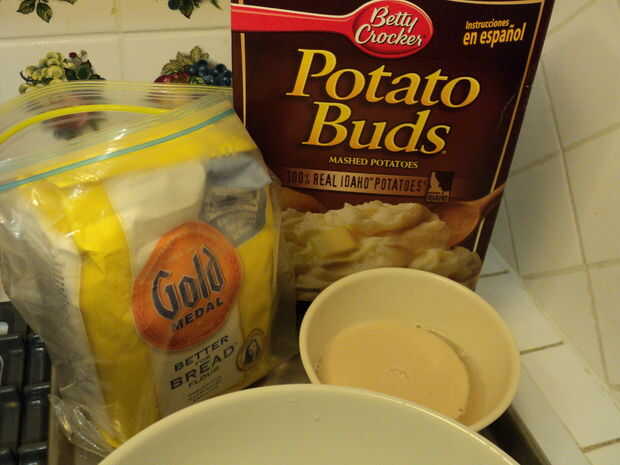 Añadir sobre la misma cantidad o un poco menos de copos de puré de patatas.