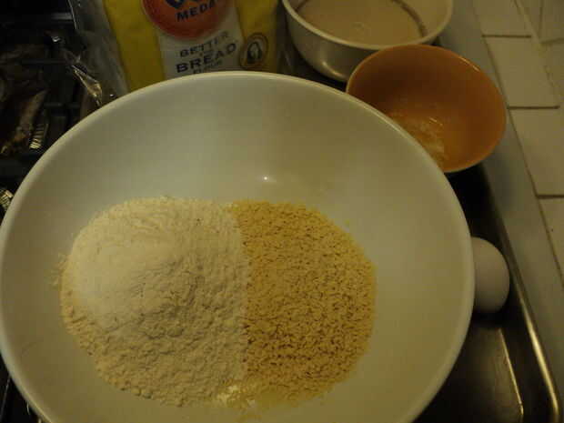 Añadir alrededor de dos tazas de harina a su tazón de fuente.