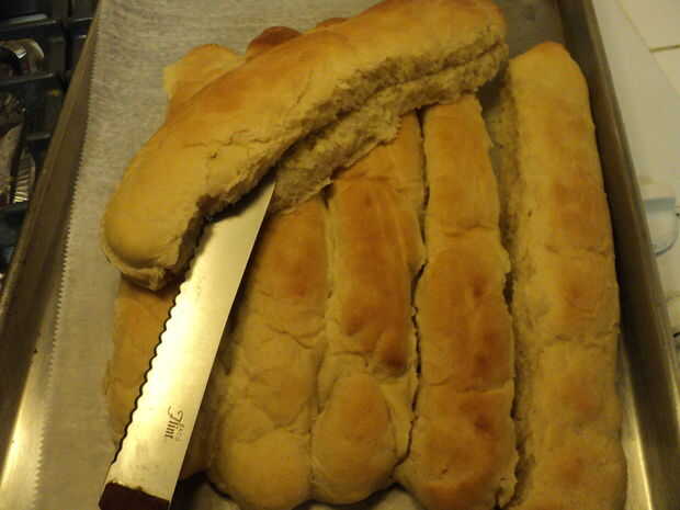 Cuando haya enfriado, separa por separándolas y rebanada a lo largo con un cuchillo de pan.