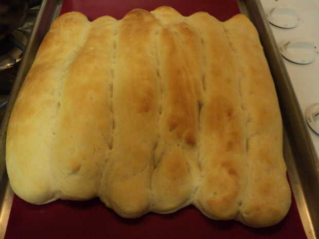 Coloque en la charola engrasada o utilice una revestimiento de silicona para mantener el pan se pegue a la sartén.