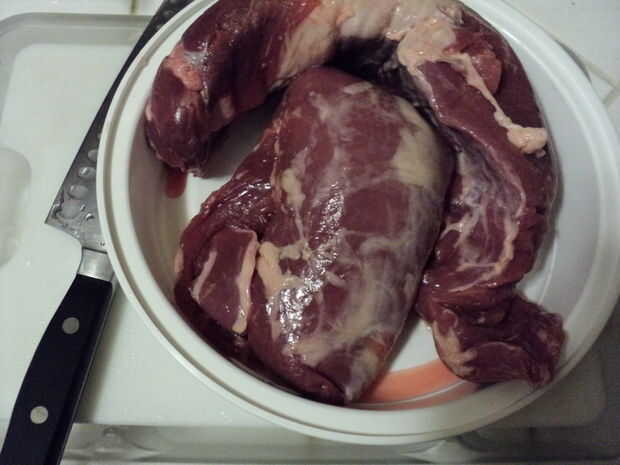 Escoge tu fuente de proteína de roadkill . Creo que cena iba a ser chuletas de lomo de cerdo en una salsa de marsala pero parecía tomar un giro diferente. Si eres de Arkansas, omita este instructable y sólo cabeza recto a la mesa de la cena.