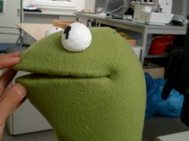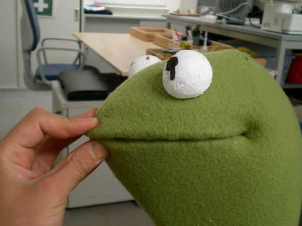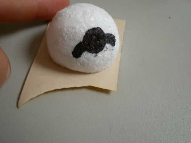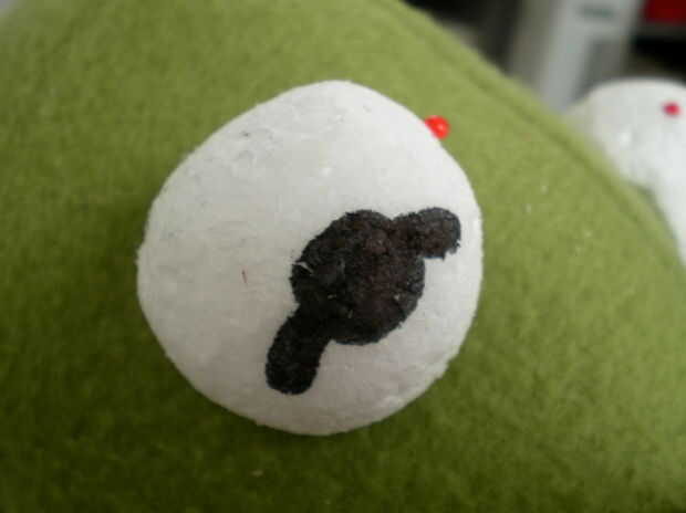 Hacer o comprar los ojos y pegarlos en el lugar (hacía de poliestireno)