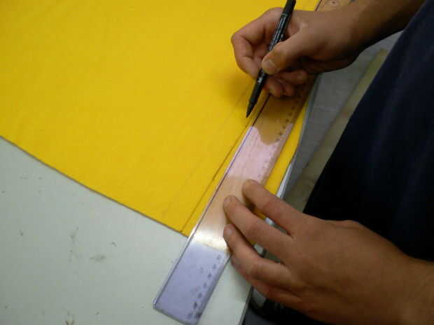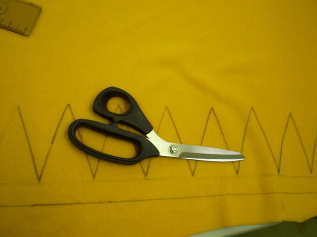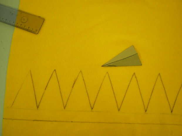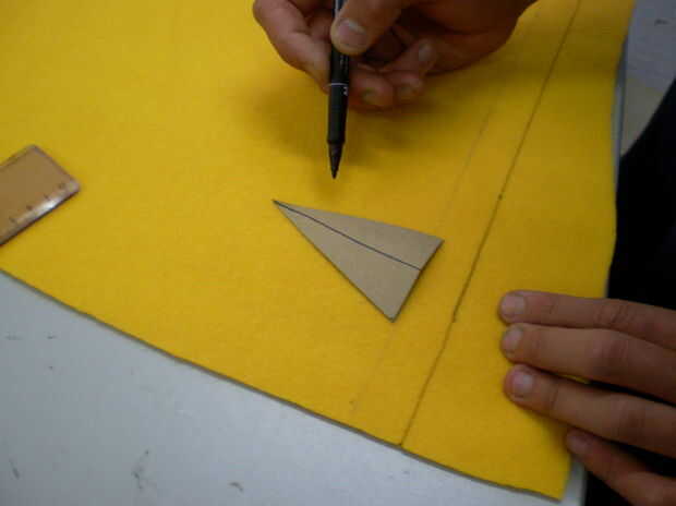 hacer un triangulo de la plantilla y cortar el cuello de polar amarillo
