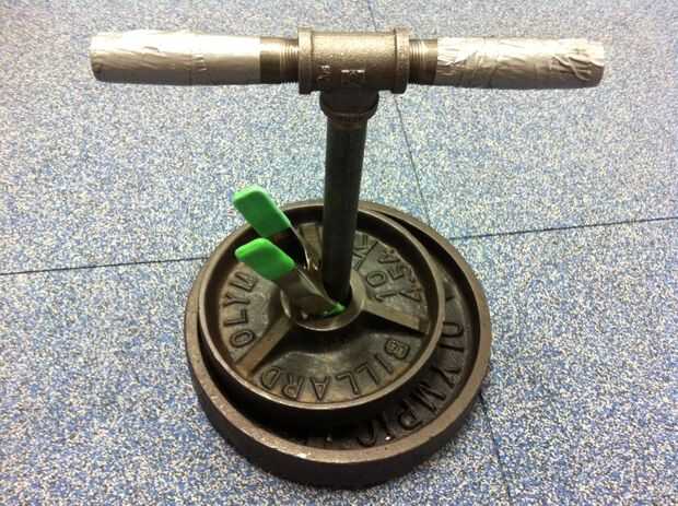 Sé que Instructables tiene algunas grandes guías para la construcción de kettlebells de bolas del caucho de hormigón y de bajo costo ($10 DIY Kettle Bell y Kettlebells DIY por menos de $10, dos alternativas para este proyecto con dos diferentes técnicas para colocar un mango en peso.) Pero no voy a mezclar el concreto, hornear algunos PVC, aprender a soldar, o sacrificar mis bolas para hacer un kettlebell que no podría usar más de un par de veces. Pero tengo $11 y el acceso a algunos pesos mal viejo oxidados en el sótano de mi edificio de apartamento. Así que vamos a empezar el partido que hace pivotar.