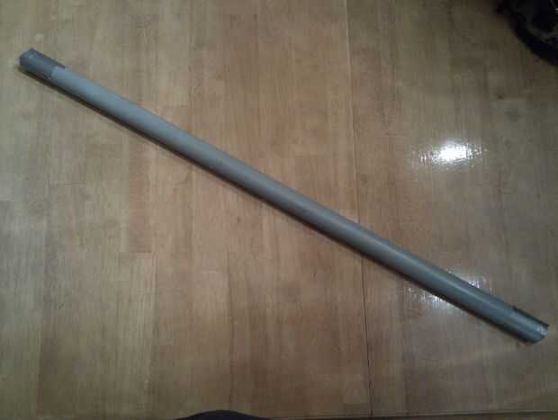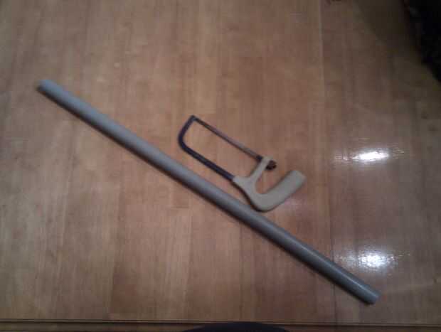 Utilice la sierra para cortar el PVC a una longitud de 26". Dependiendo de sus preferencias puede que desee una manija más grande o más pequeño, pero he encontrado que 26" hace un cómodo tamaño de mango.