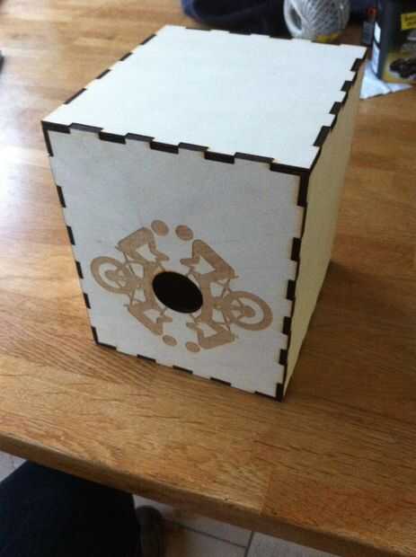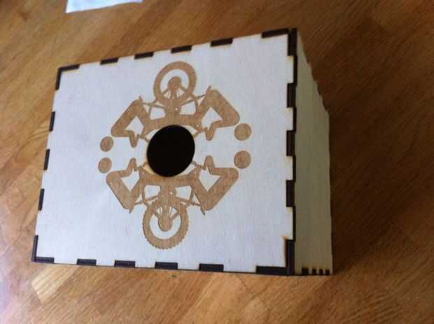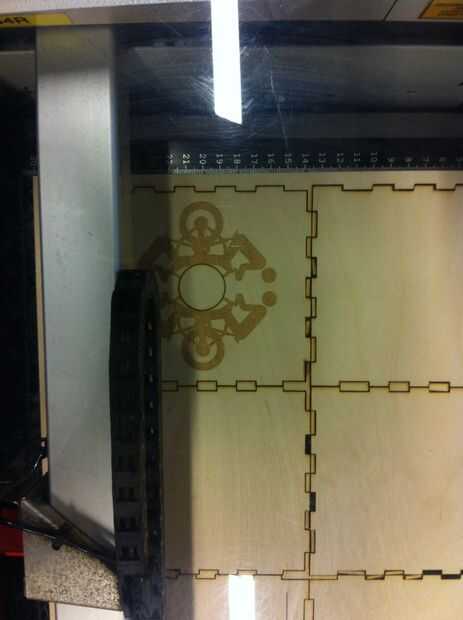 Het ontwerp vervolgens naar de lasercutter gegaan waarna het hout uitgesneden es volgens de juiste instellingen.