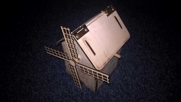 Para dar el molino un broche puede pintarlo. Pero si ha pegado correctamente y el corte por láser ha ido bien, sin quemar la madera también es bueno mantener el color original de la madera.
