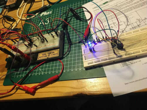 ER es daarna een simulatie via een pulsgenerator uitgevoerd. Het apparaatje werkte naar wens.