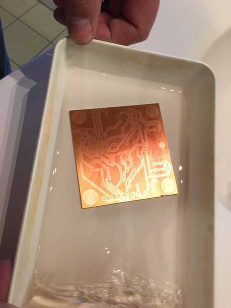 Het es een ingewikkeld proceso en voor een zeer gedetailleerde beschrijving kunt u beter googelen op "etsen printplaatje".