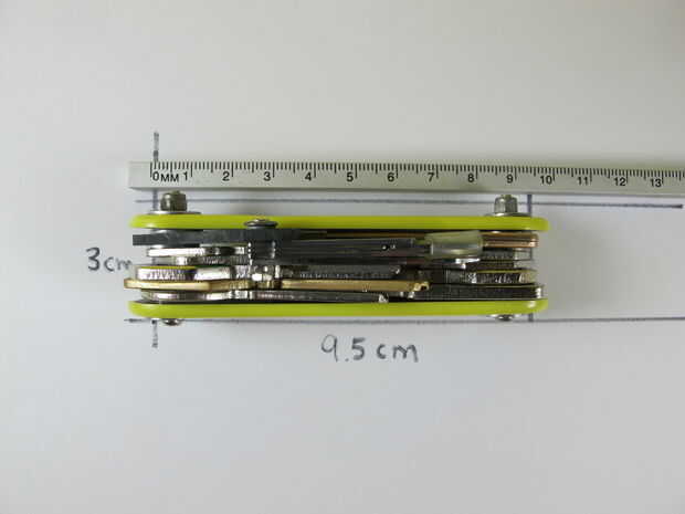 La dimensión del organizador clave es compacta y mantener 9 diferentes tamaños de llaves, 1 memoria flash USB y algunos ejército seleccionado componentes de cuchillo.
