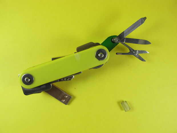 Tengo una pequeña navaja que vienen como regalo con vino. Desarmar y seleccione tres comúnmente usar funciones, es decir. un cuchillo, tijeras, destornillador, Lima de uñas.