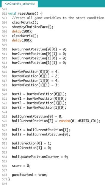 Así que tenemos que reiniciar todas las variables de juego a los valores originales.