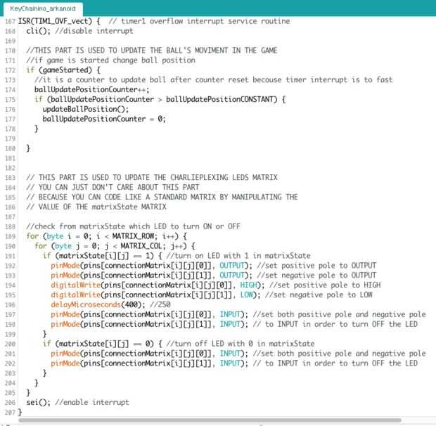 - La segunda parte se utiliza para conducir la matriz Charlieplexing según el matrixState: