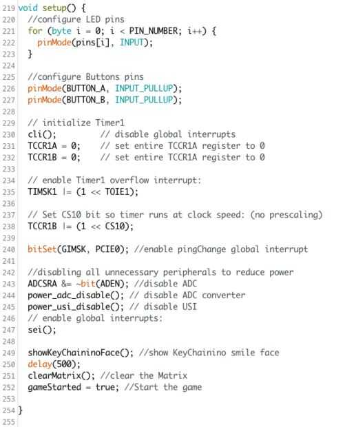 A continuación os mostramos la cara de KeyChainino llamando a la función showKeyChaininoFace() y borre todos los LEDs.
