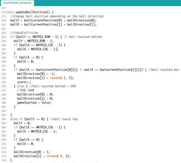El updateBallPosition() es despedido de la interrupción de rebose del temporizador 1 y se utiliza para actualizar la posición de la bola.