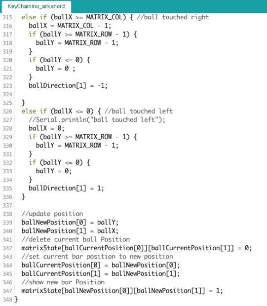 Ahora actualizamos el matrixState con la nueva posición de pelota de esta manera: