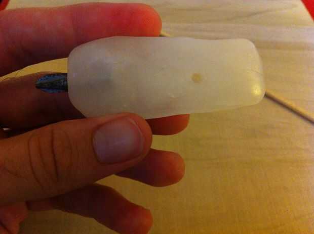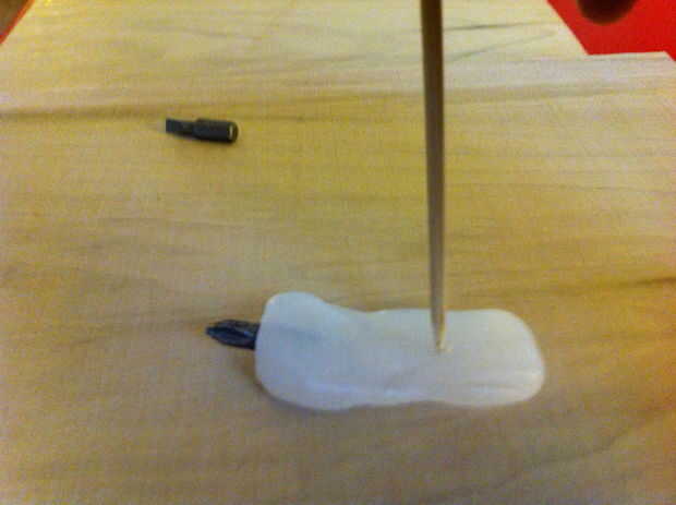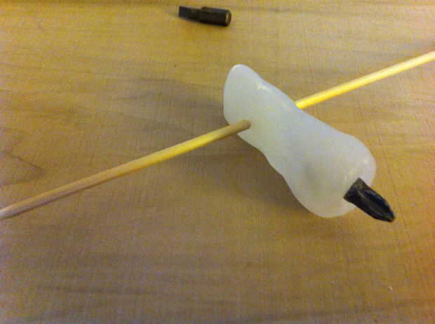 Utilizando el palillo de brocheta o un gancho de metal, haga un agujero en el extremo opuesto de la base de donde es. La salida de más al hacer el poke, más fácil será para insertar un anillo llavero estándar a través del orificio.