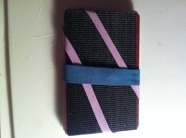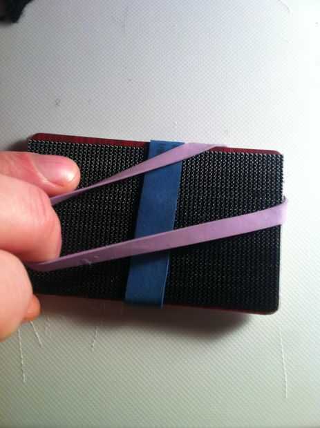 he sido fan de carteras minimalistas delgados de clip del dinero a las bandas de goma. Recientemente, mi novia Cindy creó una cartera minimalista de tamaños diferentes Liga específicamente para mis necesidades. Lamentablemente el proceso de creación