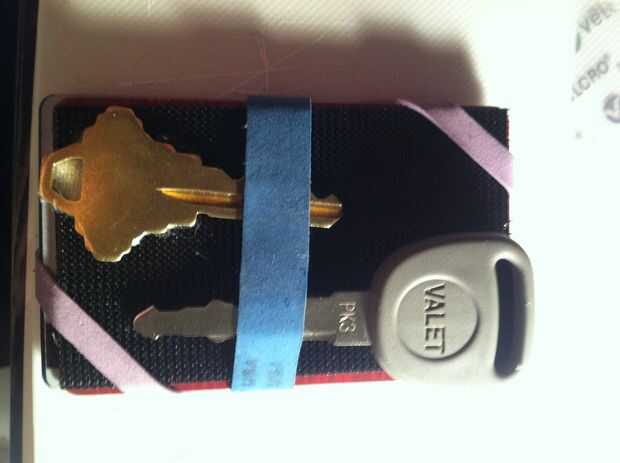 Por último, velcro las llaves a su cartera nuevos!  Para añadir una protección extra a las claves para no inadvertidamente llegar tiraron de la cinta de velcro, colocarlos debajo de la goma de brócoli y no permitir que la clave de velcro todavía.  Una vez debajo de la banda de goma, entonces usted puede velcro las llaves para el monedero.  ¡ Listo!