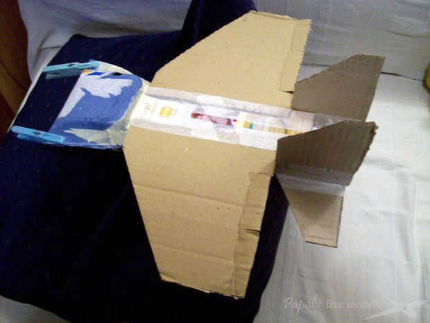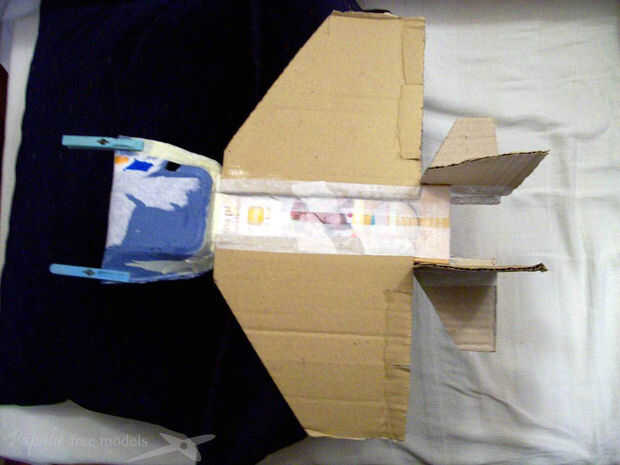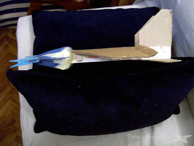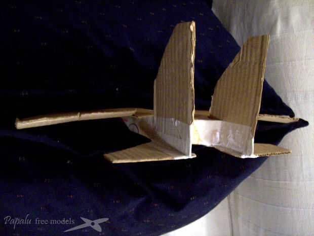 a continuación añadí las superficies horizontales de cola, de la misma cartulina que el resto - fotos desde diferentes ángulos.