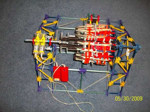 KVG Ametralladora Gatling versión 1. Dispara cerca de 40 pies con bandas de goma de 2-3 por barril. Este arma tiene 16 barriles y puede cargar 3 clavijas verdes en cada uno. Dispara unos 10 barriles por segundo hasta 30 disparos por segundo, y aún va en 40 pies. Tarda un promedio de 1 minuto para cargar. Diviértete con esto y no soy confiable por cualquier daño, perjuicio o p.o.'d amigos. El Video es para la versión de lod que tiró solamente 15 pies. Las balas dispara mucho más rápido en esta versión.
