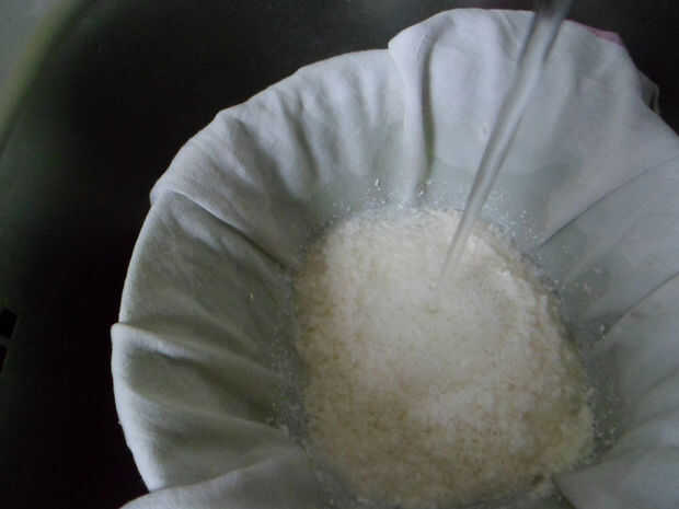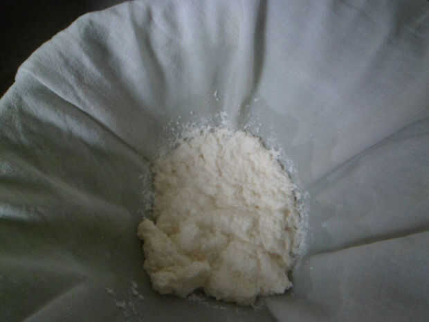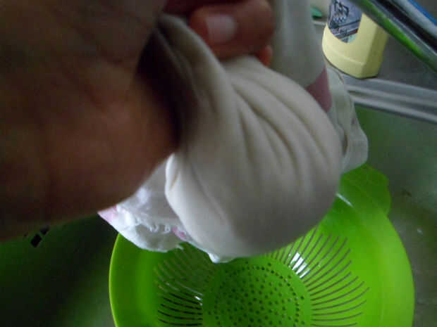 -Después de algún tiempo Retire la tela y tomar el paneer desmenuzado.
