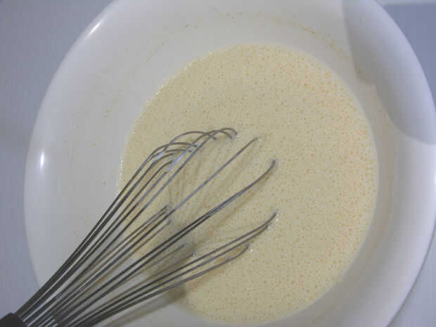■ En un recipiente aparte batir el yogurt. Agregue jugo de limón, agua a él y continuar batiendo para hacer suero de leche. Añadir este suero de leche para la harina y mezclar con un batidor. Asegúrese de que no queden grumos en la mezcla de suero de leche de harina.