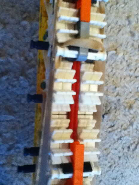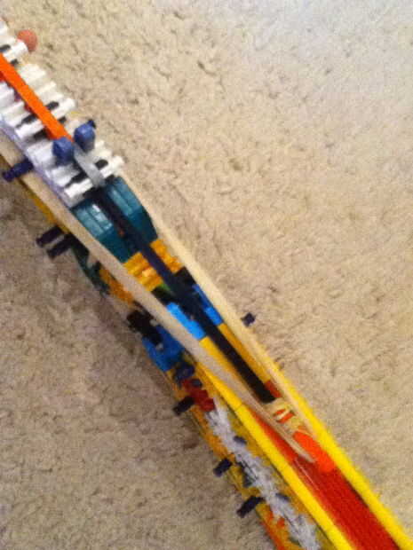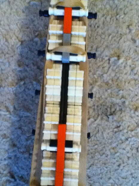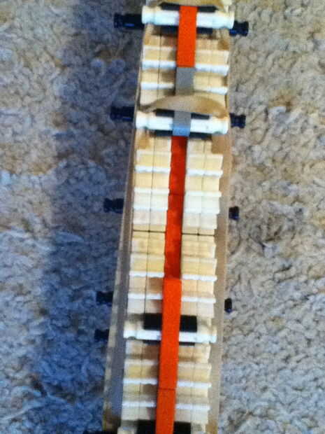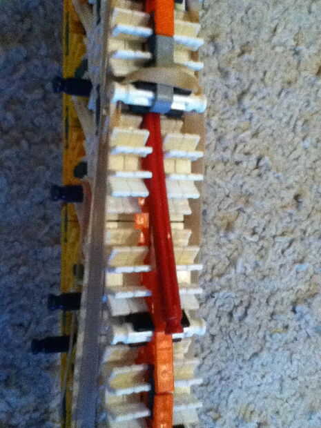 al intentar poner una barra gris en el cañón puede doblar un poco porque el puerto de expulsión es longitud de la barra azul.