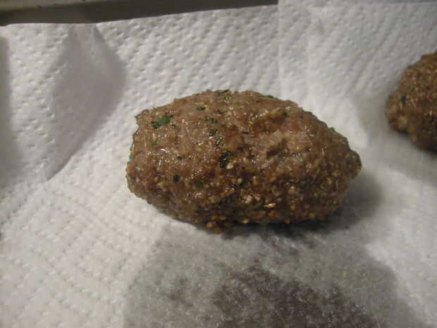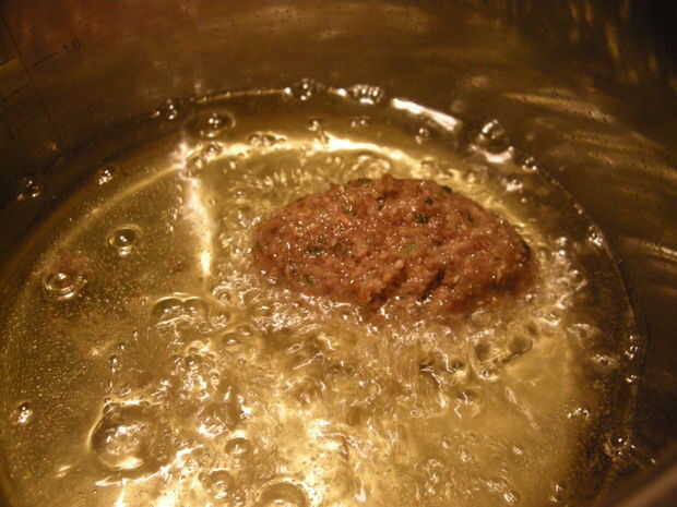 Cuando el aceite es bueno y caliente (no utilizar termómetro así que no sé una temperatura) Baje suavemente un kibe en el aceite