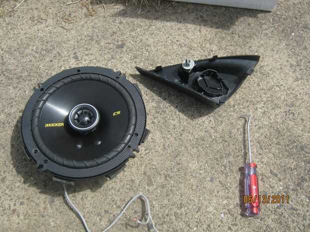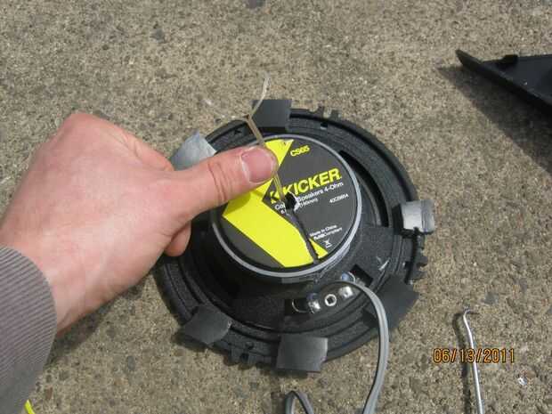 Desoldar el tweeter Kicker, suavemente cortar la pegatina trasera y retire el cable de altavoz de agudos por lo que es gratis.