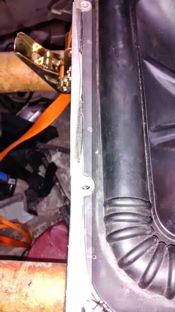 Después de limpiar la perforación y operaciones, cerca de los orificios perforados de tratar de eliminar tanto las virutas de aluminio de la zona envolvente posible, pegué la envolvente a la canasta sin limpiar el pegamento antiguo de limpieza que golpean ligeramente apagado (parecía ser bueno aún) aplicar pegamento a ambos lados con un cepillo, inmediatamente centrado el cono mejor que pude y entonces presionar el anillo a la cesta. Luego agrega el anillo de retención en el subwoofer y comenzó a instalar los 12 de mis tornillos 8-32 (no apretado, apenas iniciados).