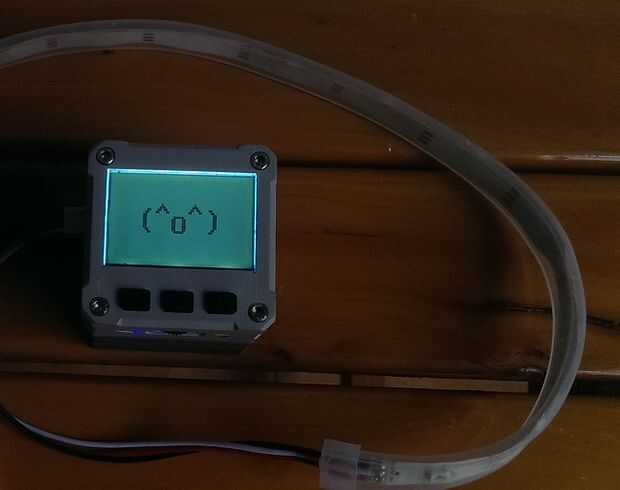 Cuando terminamos, compilar y descargar el bin en M5, hay una pantalla de sonrisa en la pantalla LCD.