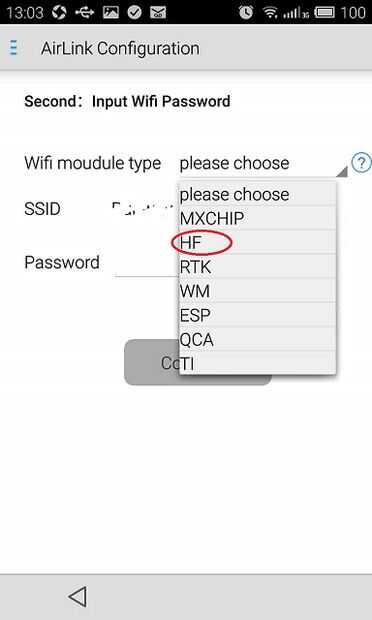 Ahora podemos utilizar la clave1 o clave2 en el módulo base M5 para configurar la configuración de WIFI. Por favor seleccione el tipo de módulo WIFI como "HF".