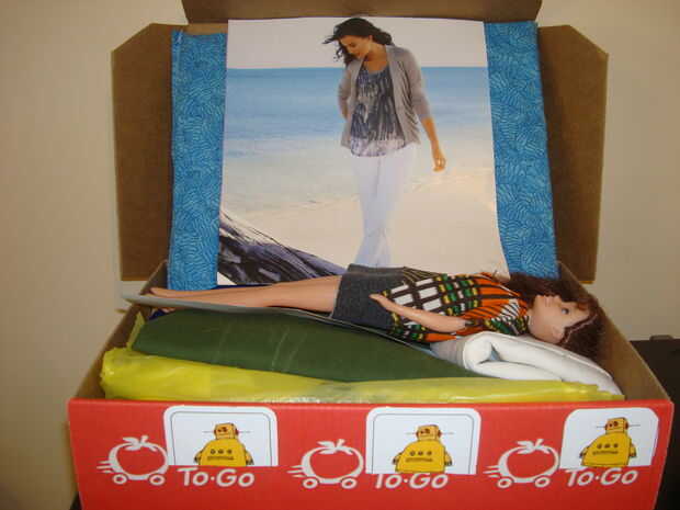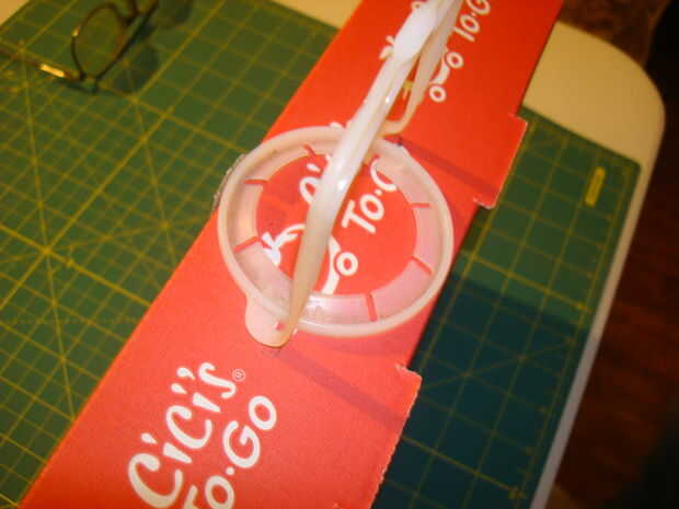 Para el cuadro de todo que hizo fue cinta un parche de instructables sobre el nombre de la pizzería por lo que se vería como Instructables para ir.