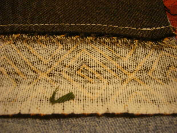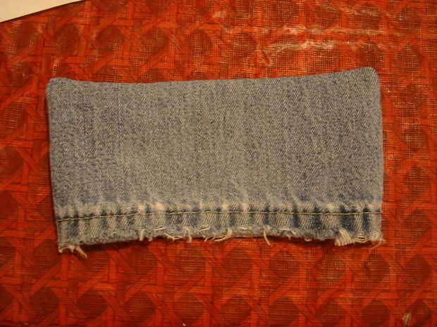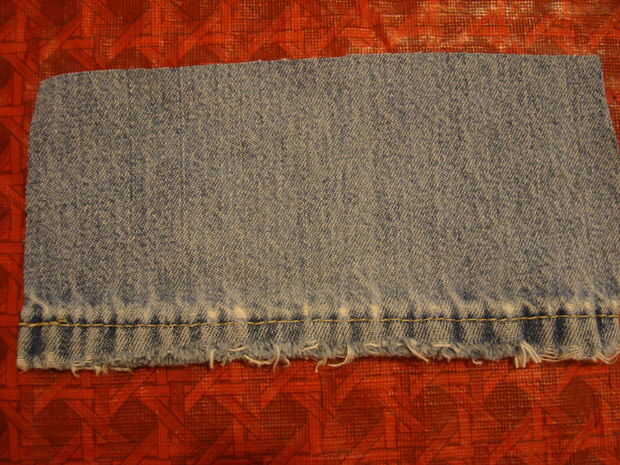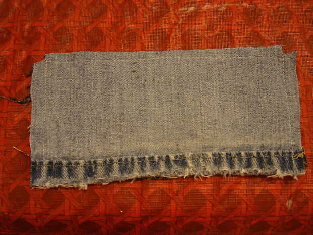 Entonces con derecho cosí los jeans a la tela dejando los bordes crudos de la tela hacer porque quería el lado dobladillado de los pantalones vaqueros para el dobladillo real.