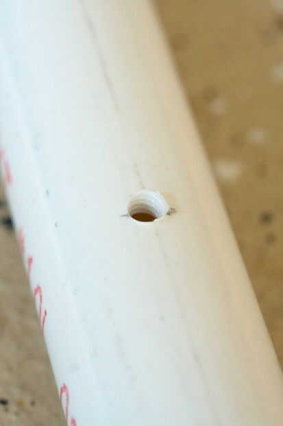 Los jets mister en los agujeros del tornillo. Usted necesitará llevar al principio para llegar al Señor hilos de jet a morder, pero después de una vuelta o dos a madriguera en el tubo muy bien. Cuando llegas a la última vuelta más o menos, alinee el jet así que enfrenta hacia el interior. Ángulo chorros cerca de las esquinas hacia el centro para que el agua salga de donde está la acción.