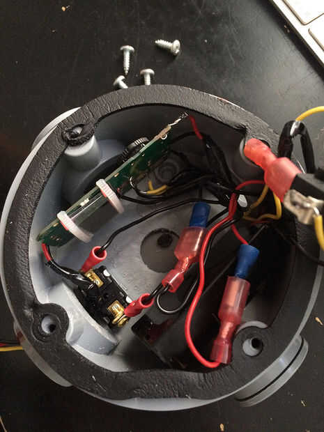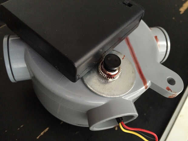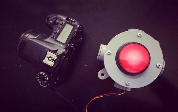 Para albergar los botones y el intervalómetro, elegí una redondeada caja de empalme de PVC, que recogí en una ferretería local. Sólo era apenas demasiado poco profunda para el botón arcade, pero cortando un agujero pequeño en la espalda, pude hacer todo lo que cabe.