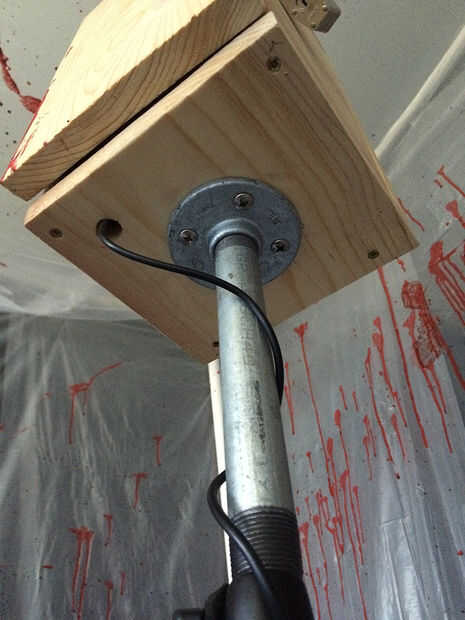 Para la base, descubrí que una brida 3/4 de pulgada y tubo de ajuste sobre la parte superior de mi titular de telón de fondo/lightstand perfectamente.