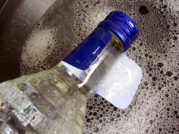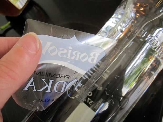 Deshacerse de las etiquetas desagradables baratas en su barata desagradable botella de wodka. Utilizar cualquier medio necesario: agua caliente y jabón, aguarrás, lo que lleva.