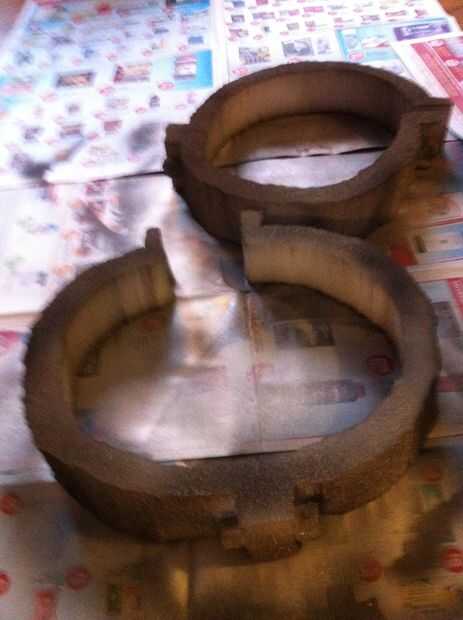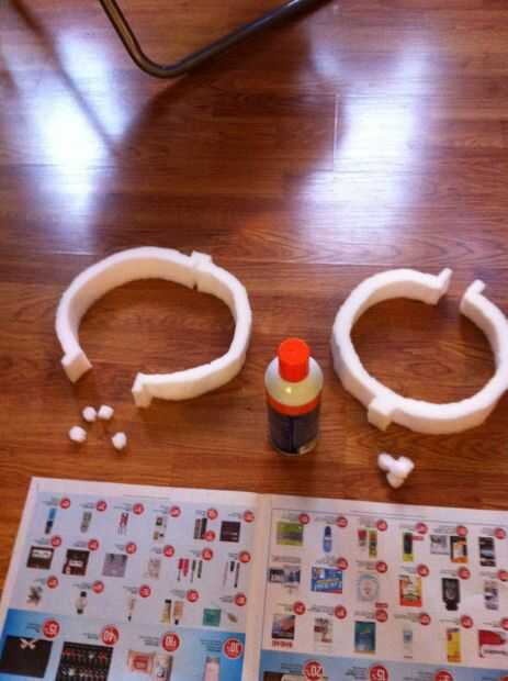 Hay algunos acero buscando detalles en el lado de las cadenas que hacen espuma de artesanía. Guíese por las fotos, cortar 4 piezas con bordes redondeados y 8 círculos. Luego pintar con negro y plata. Puede pegar estas del lado de las tazas de aplicar el pegamento del aerosol a las piezas de espuma y presionar sobre la Copa.