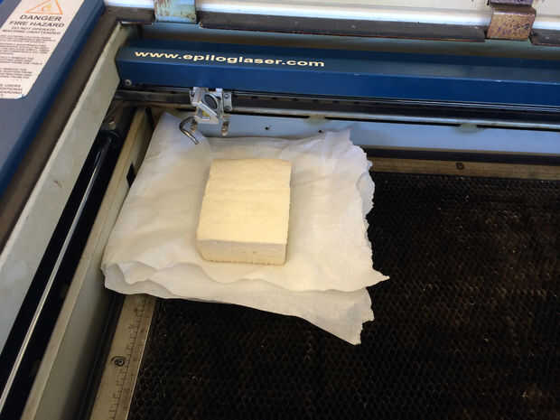 En el láser de corte, coloque una toalla de papel sobre la rejilla y el tofu en la parte superior.